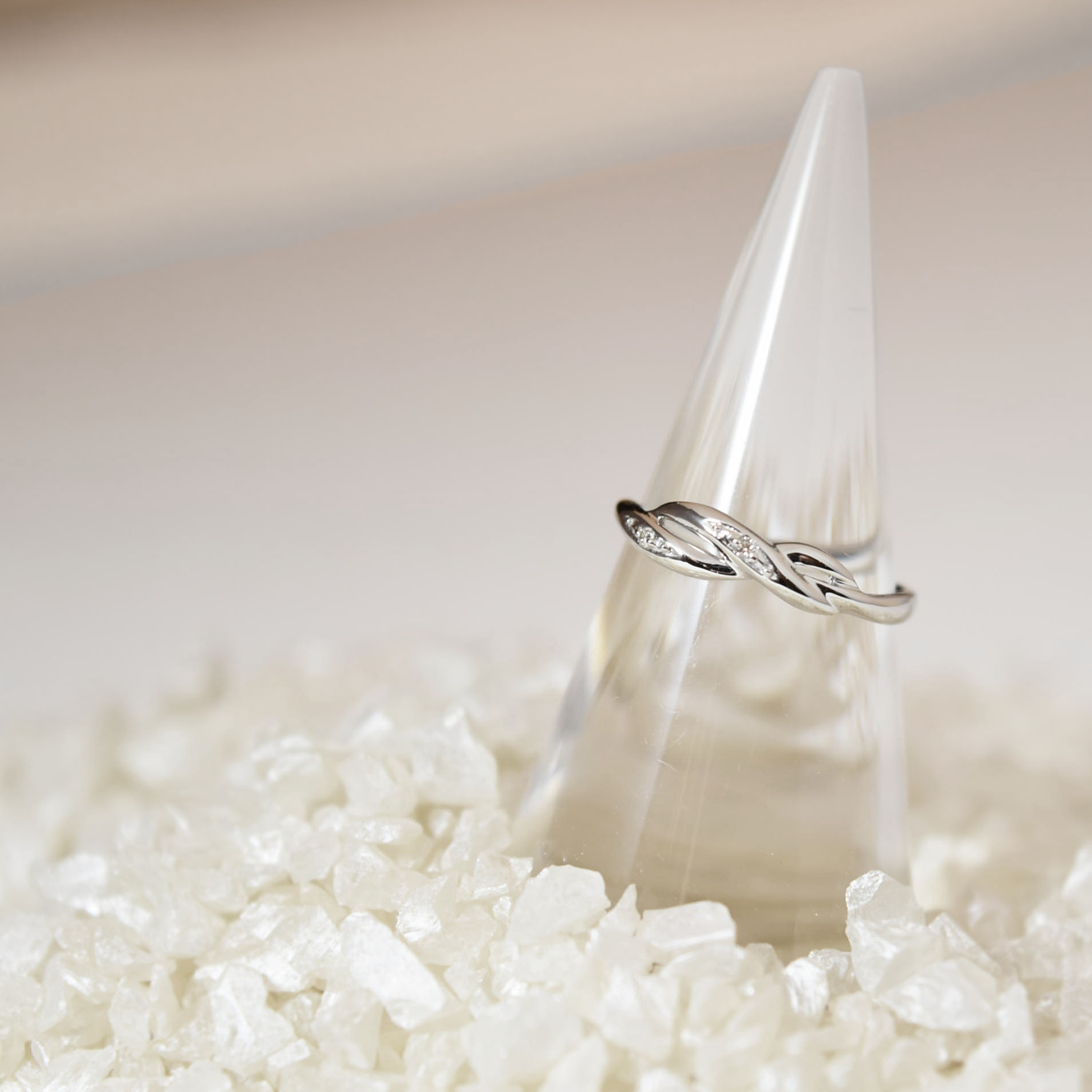 ストレートのハーフエタニティリングに比べて、優しい柔らかい印象になるのも◎