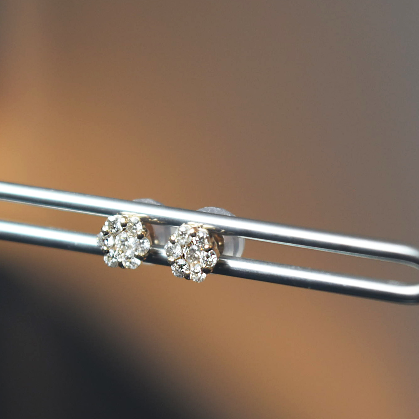 お花の形にダイヤモンド7石配置した、可愛らしいピアスのご紹介です。